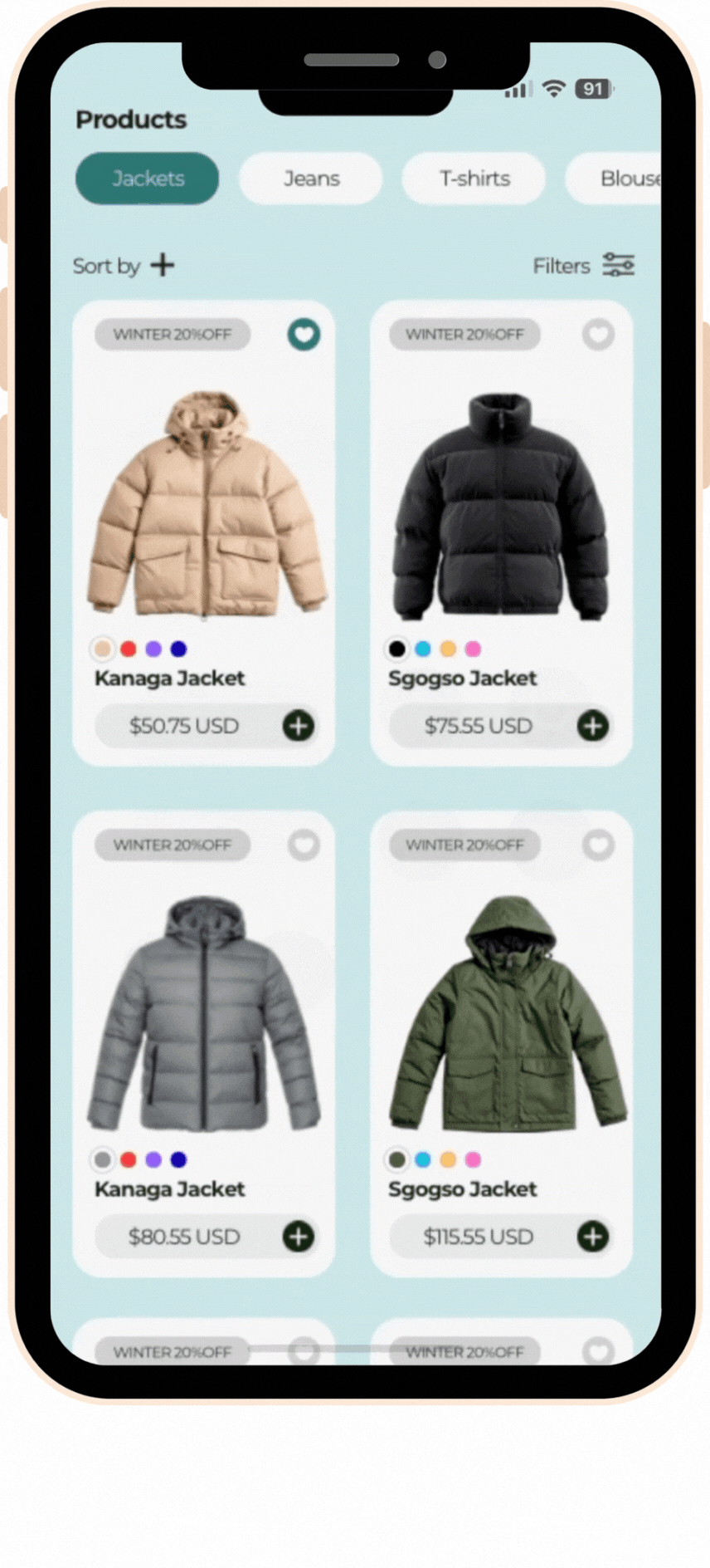 Breathing Outdoors is a sustainable outdoor clothing brand focused on durability, accessibility, and long-term use. The mobile app was designed to support thoughtful shopping decisions through a calm, visual-first experience built for everyday outdoor life.