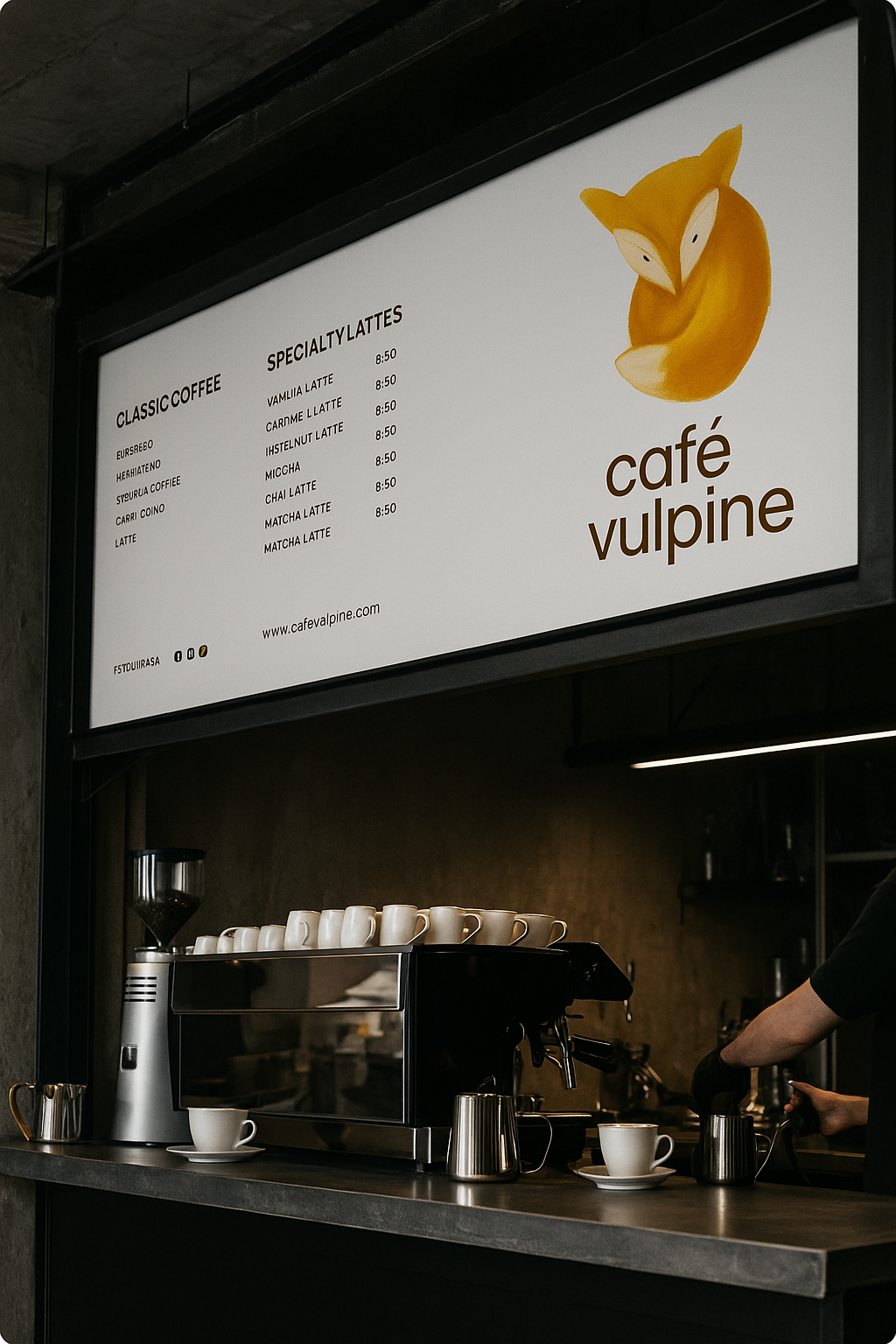 Café Vulpine is an imagined artisan coffee brand, inspired by the quiet charm and intelligence of the fox.