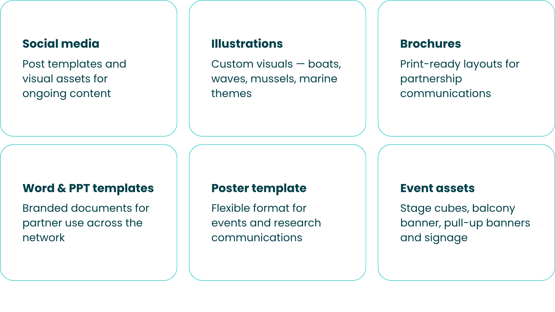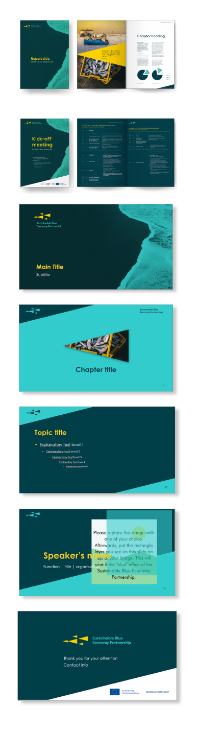 The Sustainable Blue Economy Partnership (SBEP) is a Horizon Europe co-funded partnership bringing together over 74 institutions from 30 countries and the European Commission, pooling research and innovation investments to drive a sustainable blue economy across Europe's sea basins. JPI Oceans leads the communications, outreach and dissemination work package, and as that workload grew, the existing brand guidelines, focused mainly on logo usage and colours, were no longer enough to cover the full range of materials the partnership needed to communicate at scale.